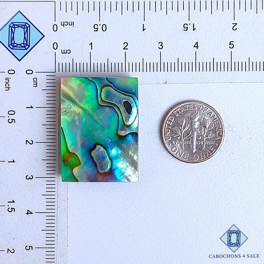 Cabujones rectangulares de piedra preciosa de concha de abulón natural de 29 x 21 x 5 mm, de Nueva Zelanda, disponibles para la venta.