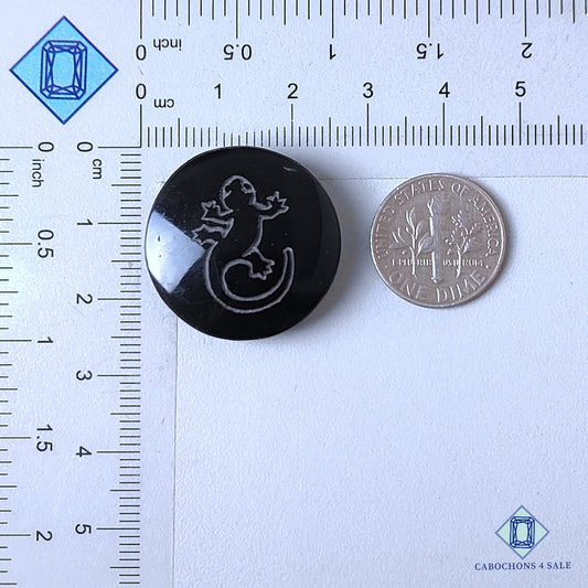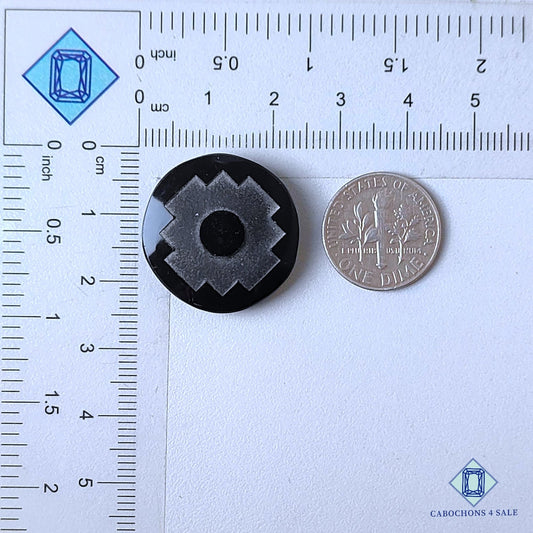 Tallas redondas de obsidiana negra natural de 25 x 7 mm procedentes de México, disponibles para la venta.