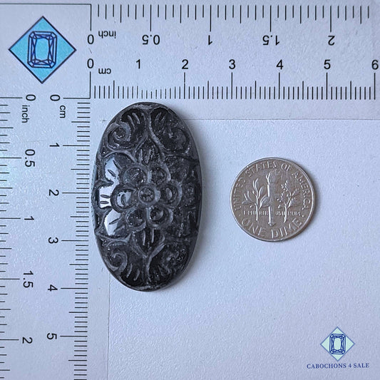 Cabujones ovalados de obsidiana negra natural de 40 x 26 x 5 mm, de México, disponibles para la venta.