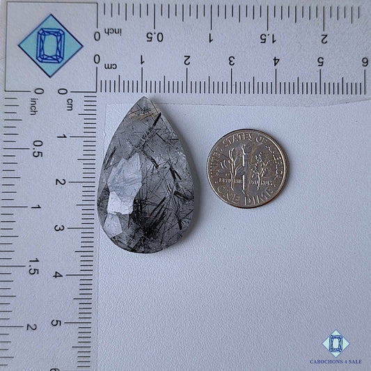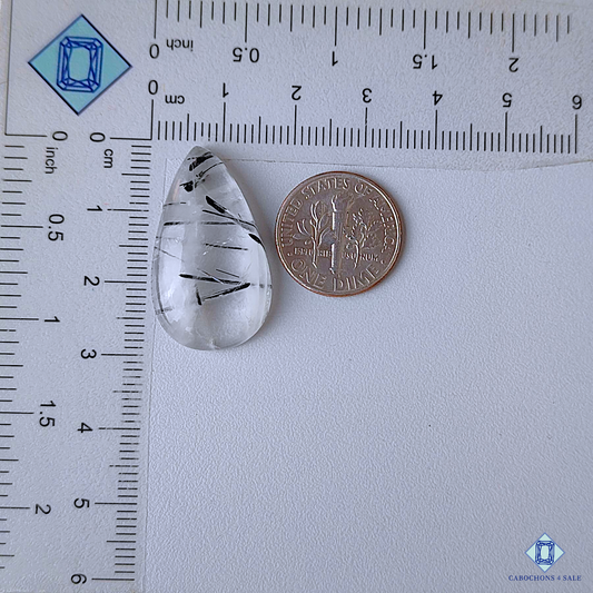 Cabujones de cuarzo rutilado negro en forma de pera (18 x 14 x 6 mm)
