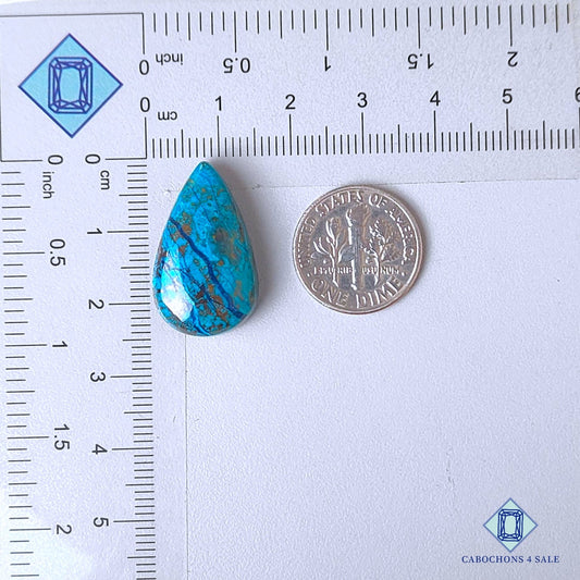Cabujones de azurita crisocola natural en forma de pera, 31 x 25 x 7 mm, de Perú, disponibles para la venta.