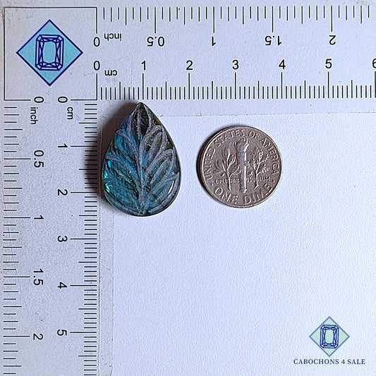 Labradorita azul natural tallada a mano, 35 x 21 x 7 mm, de Madagascar, disponible para la venta.