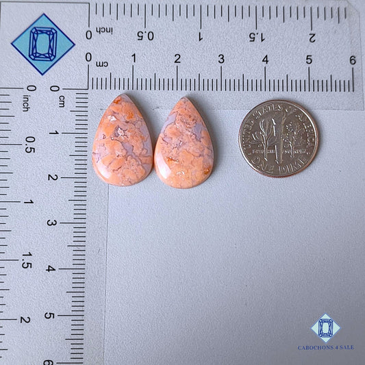 Pares de piedras preciosas de ágata de flor de cerezo natural en forma de pera de 20 x 13 x 4 mm de Madagascar, disponibles para la venta.