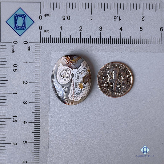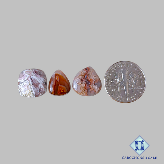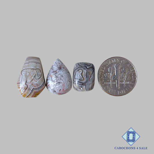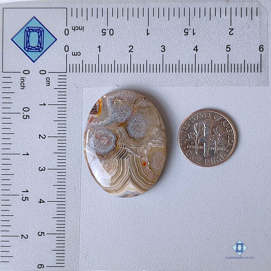 Cabujones ovalados de ágata natural de encaje loco de 43 x 31 x 5 mm, procedentes de México, disponibles para la venta.