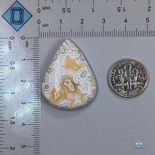 Piedra preciosa de ágata de encaje loco natural en forma de pera Druzy de 25 x 19 x 6 mm procedente de México, disponible para la venta.