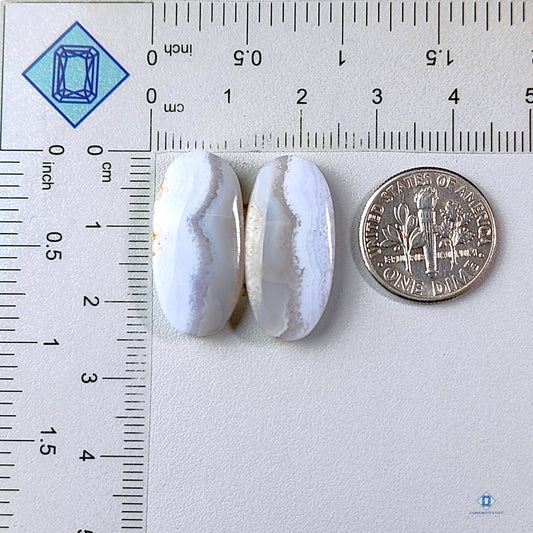 Pares de piedras preciosas ovaladas de ágata de encaje loco natural de 21 x 13 x 4 mm, procedentes de México, disponibles para la venta.