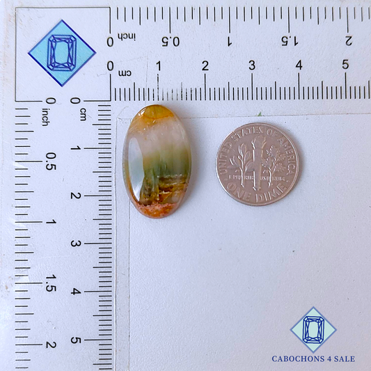 Cabujones ovalados de cuarzo rutilado cacoxenita verde natural de 22 x 17 x 5 mm, de Brasil, disponibles para la venta.