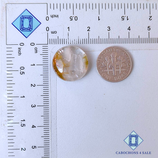 Cabujones redondos de cuarzo rutilado cacoxenita verde de 17 x 6 mm