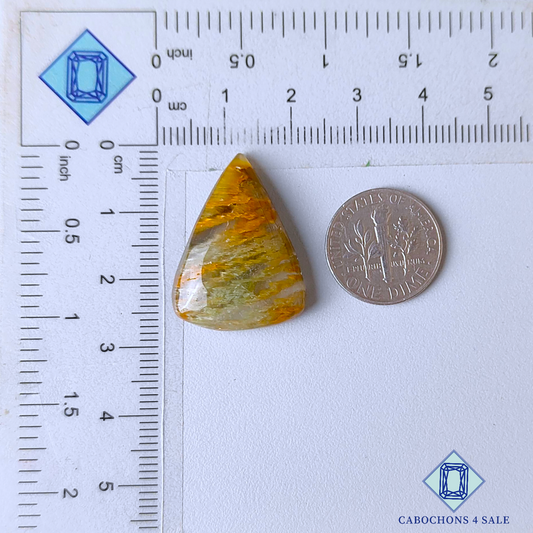 Cabujones de cuarzo rutilado de cacoxenita verde natural en forma de pera, 26 x 18 x 6 mm, de Brasil, disponibles para la venta.