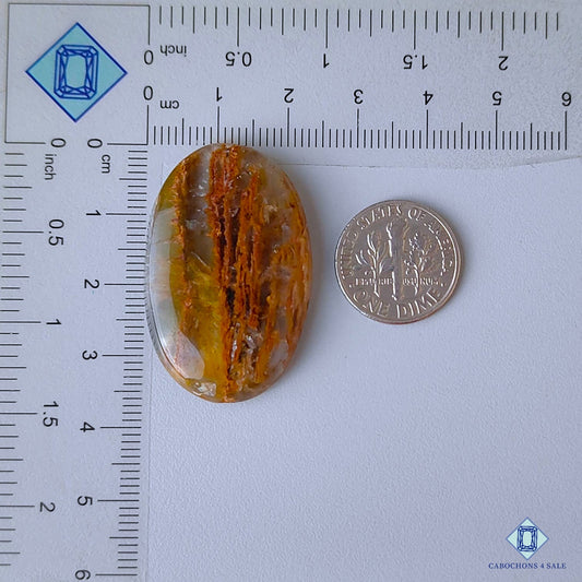Cabujones ovalados de cuarzo rutilado cacoxenita verde de 43 x 26 x 6 mm