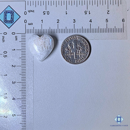 Piedras preciosas de piedra lunar africana natural talladas en forma de corazón, de 16 x 16 x 7 mm, procedentes de Madagascar, disponibles para la venta.