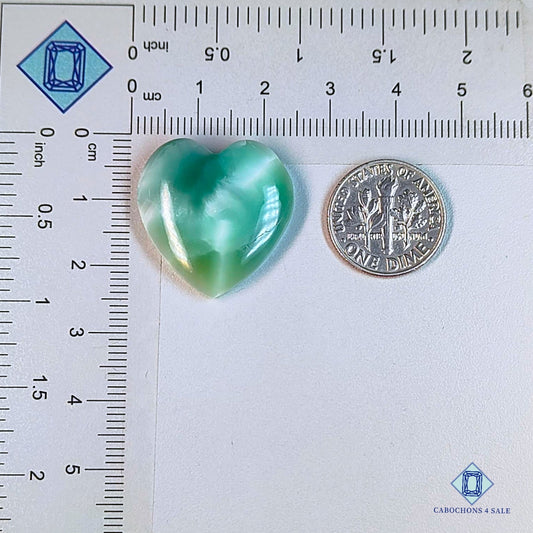 Piedras preciosas de calcedonia verde natural talladas en forma de corazón (13 x 14 x 6 mm) procedentes de Turquía. Disponibles para la venta.