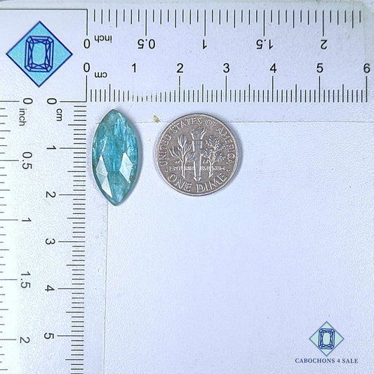 Piedra preciosa de cianita aqua natural talla marquesa rosa de 19 x 9 x 3 mm procedente de Brasil, disponible para la venta.