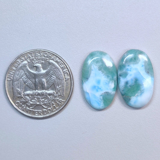 Cabujones ovalados de larimar verde de 33 x 17 x 6 mm