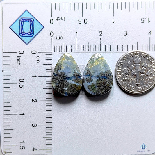 Cabujones de piedra preciosa de marcasita natural en forma de pera, 44 x 25 x 5 mm, de EE. UU., disponibles para la venta.