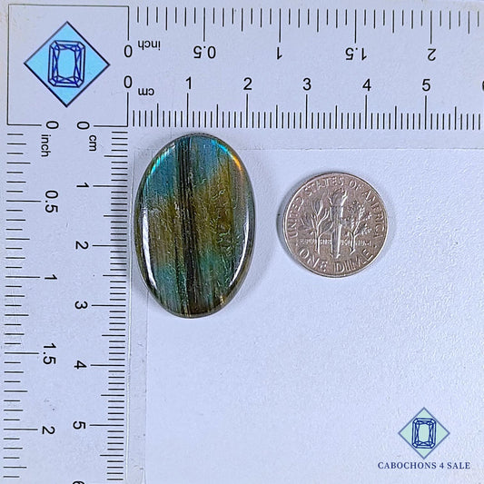 Cabujones ovalados de labradorita multicolor natural de 32 x 24 x 7 mm de Madagascar disponibles para la venta.