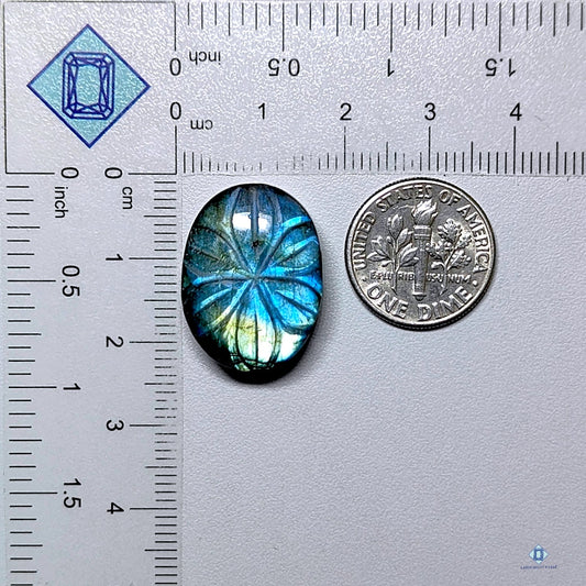 Labradorita natural multicolor tallada a mano de Madagascar, 26 x 15 x 5 mm, disponible para la venta.