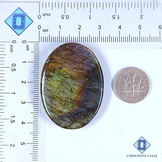 Cabujones ovalados de labradorita multicolor natural de 42 x 31 x 7 mm de Madagascar disponibles para la venta.