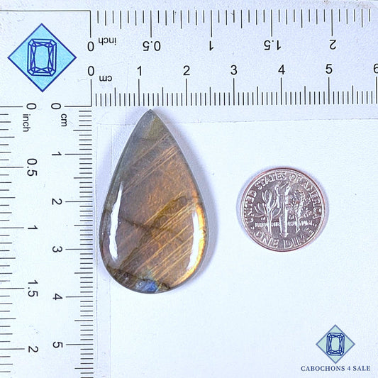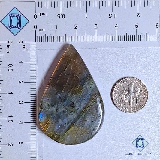 Cabujones de labradorita multicolor natural de 38 x 23 x 6 mm de Madagascar, disponibles para la venta.
