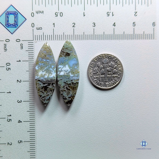 Cabujones de ópalo azul musgo en forma de marquesa