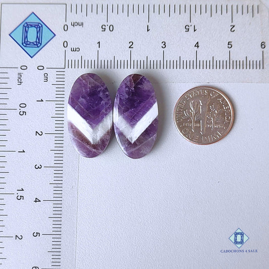 Pares de piedras preciosas ovaladas de amatista natural de 25 x 13 x 5 mm, procedentes de Brasil, disponibles para la venta.