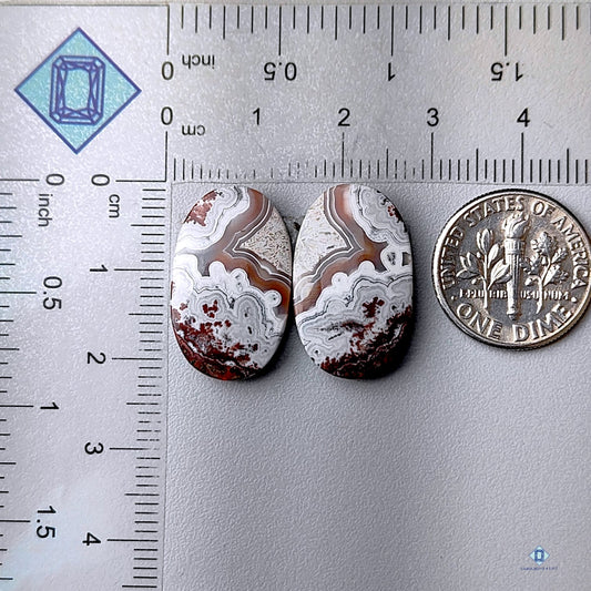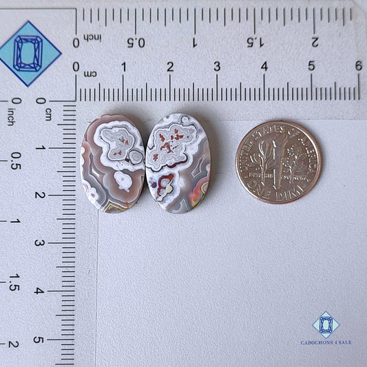 Pares de piedras preciosas ovaladas de ágata de encaje loco natural de 21 x 13 x 4 mm, procedentes de México, disponibles para la venta.