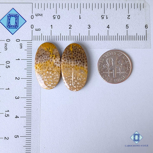 Pares de piedras preciosas ovaladas de coral fósil natural de 25 x 14 x 4 mm de Indonesia, disponibles para la venta.