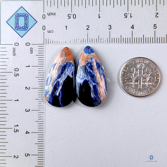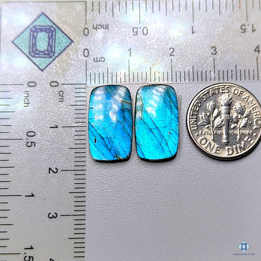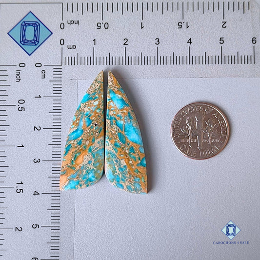 Pares de piedras preciosas ovaladas de ópalo azul natural de 34 x 15 x 4 mm procedentes de Perú, disponibles para la venta.