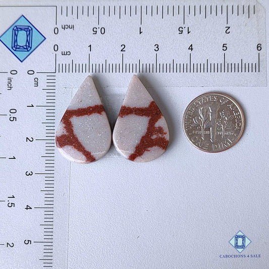 Pares de piedras preciosas de ágata de flor de cerezo natural en forma de pera de 20 x 13 x 4 mm de Madagascar, disponibles para la venta.
