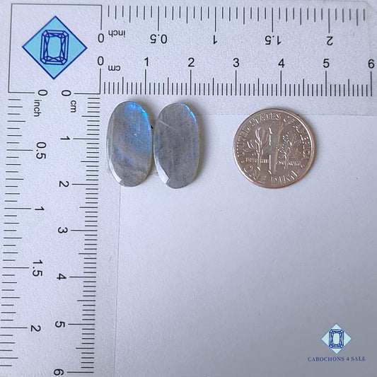 Labradorita azul natural en pares ovalados de 18 x 10 x 3 mm, procedente de Canadá. Disponible para la venta.