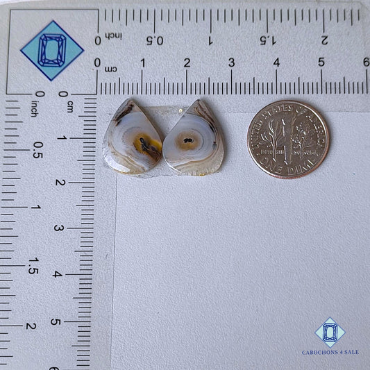 Pares de piedras preciosas de ágata de Montana natural en forma de pera de 17 x 13 x 3 mm, procedentes de EE. UU., disponibles para la venta.
