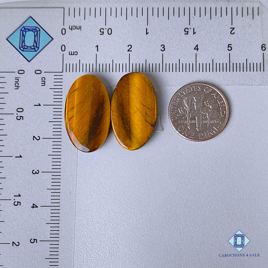 Pares de piedras preciosas ovaladas de ojo de tigre natural de 23 x 13 x 4 mm procedentes de Sudáfrica, disponibles para la venta.