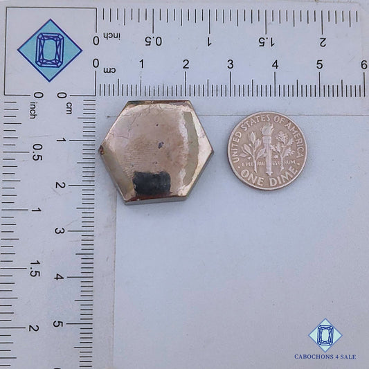 Cabujones hexagonales de pirita natural de 21 x 18 x 4 mm, de Perú, disponibles para la venta.