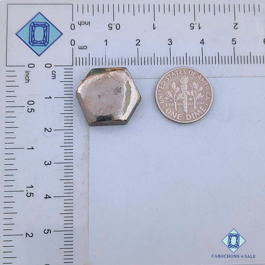 Cabujones hexagonales de pirita natural de 18 x 16 x 4 mm, de Perú, disponibles para la venta.
