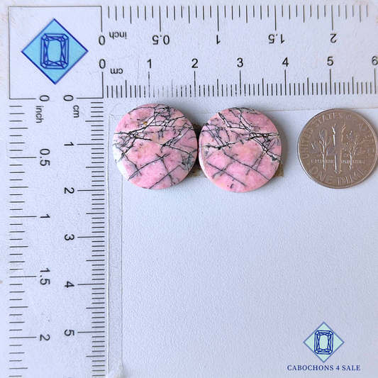 Cabujones de rodonita redonda de calidad AAA+ a la venta, redondos de 23 x 5 mm.
