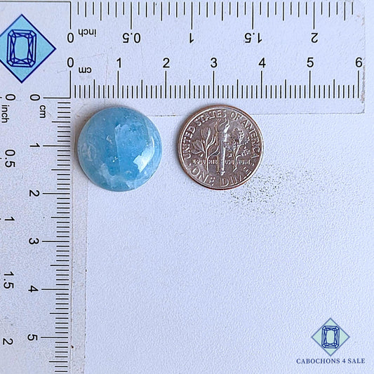 Cabujones redondos de aguamarina natural de 17 x 5 mm, de Brasil, disponibles para la venta.