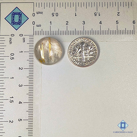 Cabujones redondos de cuarzo rutilado dorado natural de 16 x 6 mm, de Brasil, disponibles para la venta.