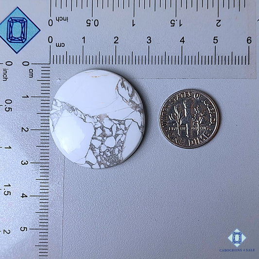 Cabujones redondos de howlita natural de 30 x 5 mm de California, disponibles para la venta.