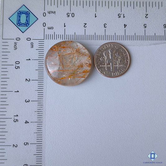 Cabujones redondos de cobre con cuarzo rutilado negro de 22 x 7 mm
