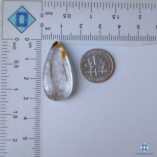 Cabujones de cuarzo rutilado negro en forma de pera (20 x 11 x 6 mm)