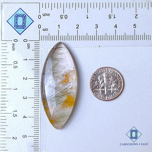 Cabujones de cuarzo rutilado dorado natural de 31 x 14 x 7 mm, de Brasil, disponibles para la venta.