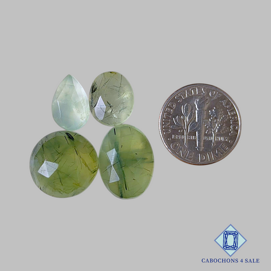 Piedras preciosas de rutilo prehnita natural talladas en forma de pera de 31 x 22 x 6 mm procedentes de Sudáfrica, disponibles para la venta.