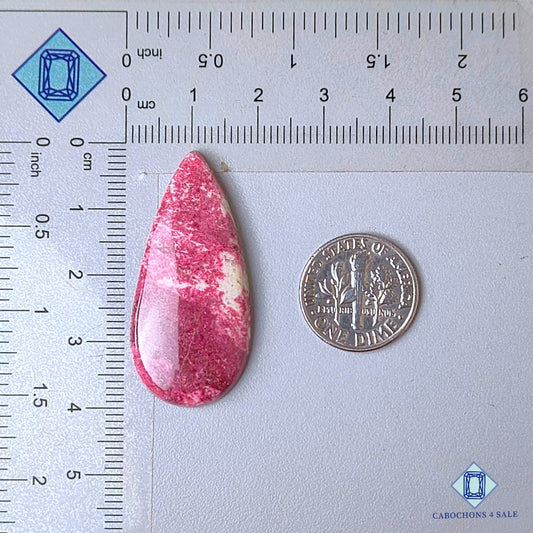 Cabujones de piedra preciosa de thulita rosa natural en forma de pera de 38 x 18 x 5 mm, de Noruega, disponibles para la venta.