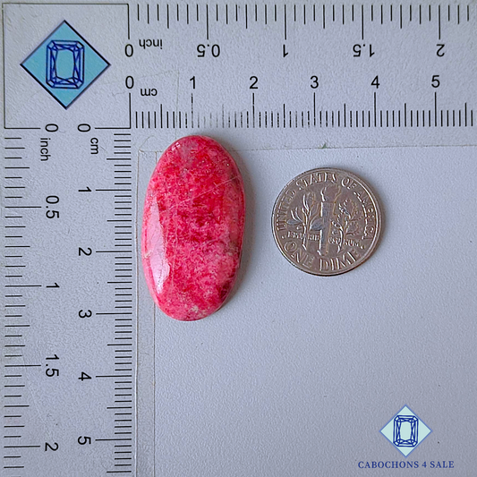Cabujones ovalados de piedra preciosa thulita rosa natural de 33 x 22 x 6 mm, procedentes de Noruega, disponibles para la venta.