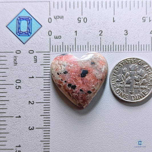 Tallas de corazón de piedra preciosa de thulita natural de 25 x 28 x 5 mm, procedentes de Noruega, disponibles para la venta.