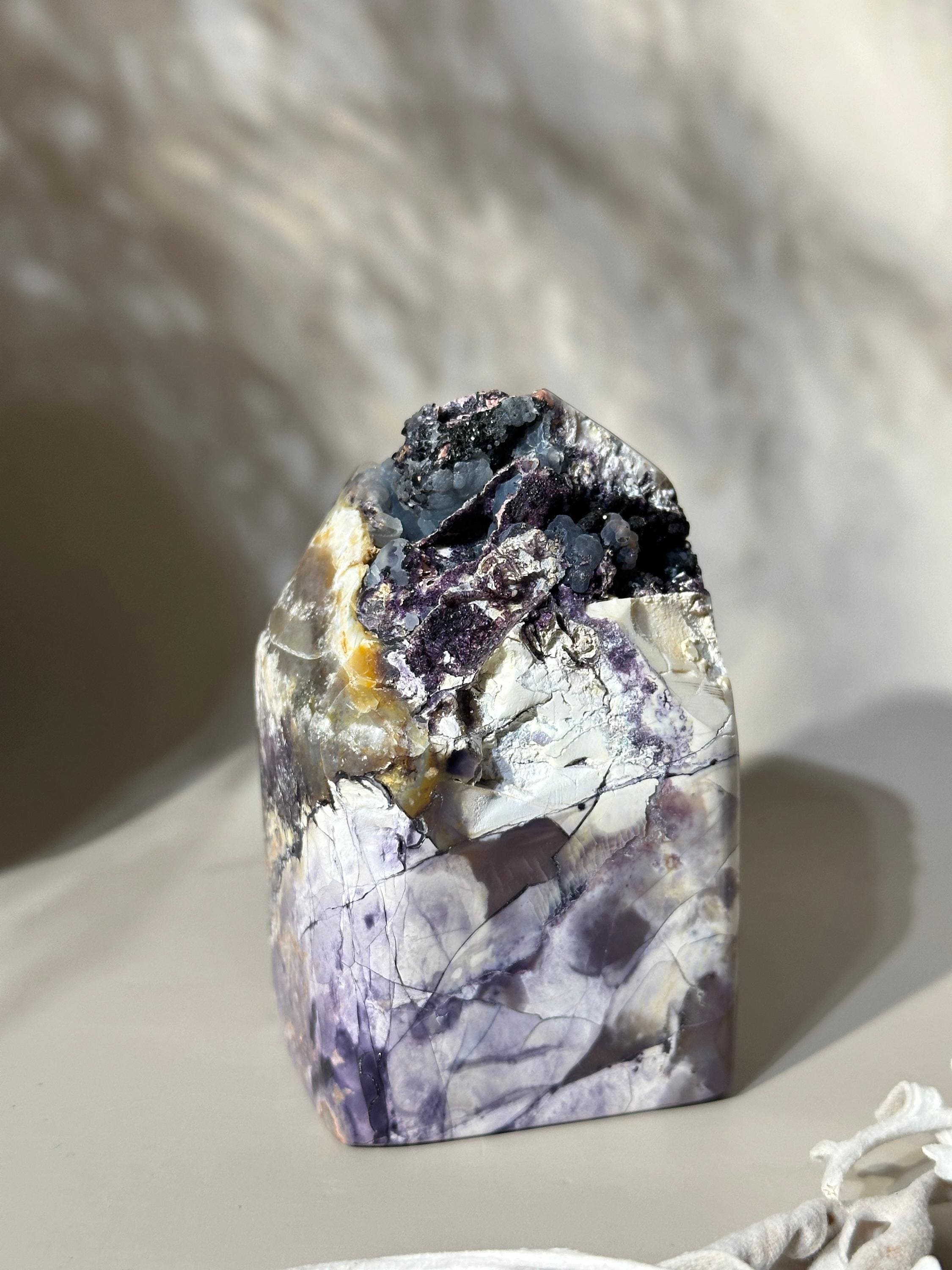Lapidaries have grown creative with cutting styles, too. You’ll find Tiffany gemstones faceted, though the stone truly shines as Tiffany rose cut gemstones, cabs, and traditional Tiffany cut stones. Depending on the mining area, the patterns vary, making no two cabs alike. Color variation is part of what collectors admire. Sometimes a stone shows ghost-like transitions or soft watercolor blends, and other times it's more bold and contrast-heavy. These natural quirks are what set genuine Tiffany cabochons for sale apart from synthetic materials.