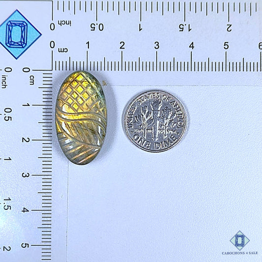 Cabujones ovalados de labradorita amarilla de 38 x 20 x 6 mm