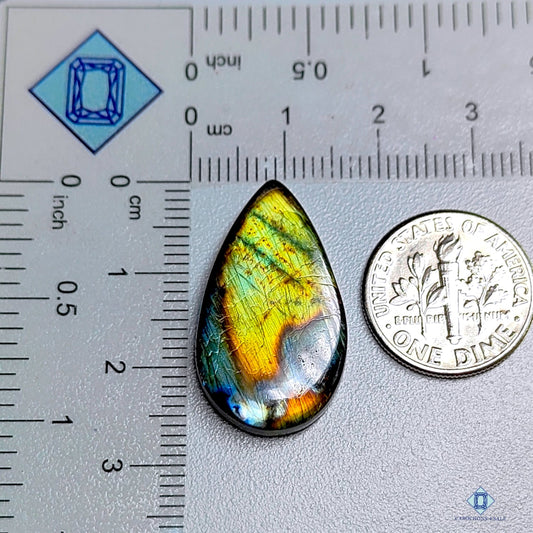 Cabujones de labradorita amarilla natural en forma de pera de 29 x 19 x 5 mm de Madagascar, disponibles para la venta.