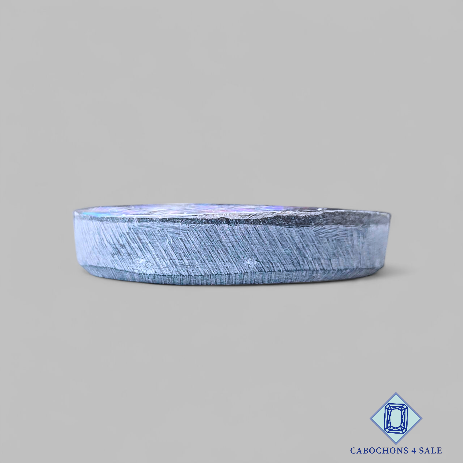 Deslice las imágenes para ver la piedra con la tabla de dimensiones. Esta es una gema de concha de abulón. El producto es natural, ovalado y opaco. La concha de abulón es de color azul y mide 33 x 24 x 7 mm. La claridad de esta pieza es opaca. El producto está disponible exactamente como se muestra en la imagen: 1 pieza de cabujones ovalados de concha de abulón certificados por el precio indicado anteriormente.