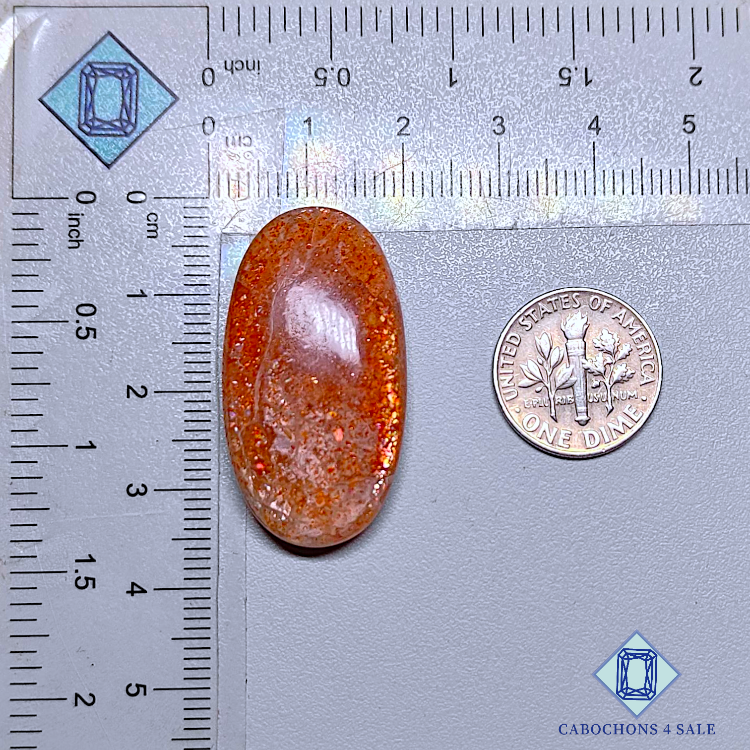 Deslice las imágenes para ver la piedra con la tabla de dimensiones. Esta es una piedra solar africana. El producto es natural, ovalado y translúcido. La piedra solar africana es de color naranja y mide 34 x 18 x 7 mm. La claridad de esta piedra solar africana es translúcida. El producto está disponible exactamente como se muestra en la imagen: 1 pieza de cabujones ovalados de piedra solar africana certificados por el precio indicado anteriormente.